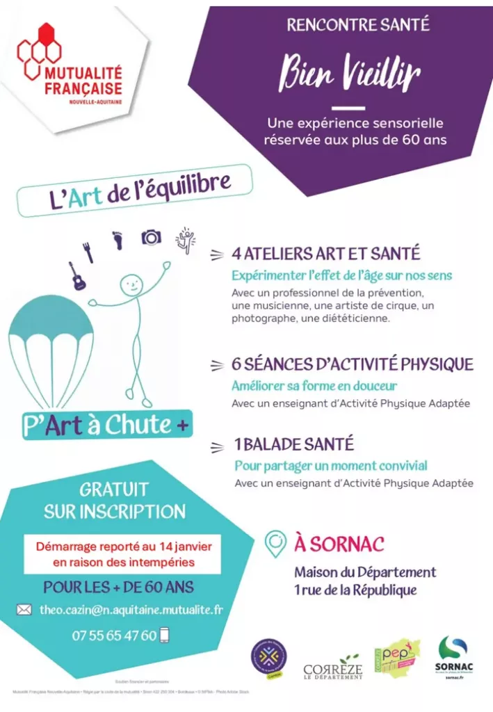 Pour entretenir la forme des seniors et limiter le risque de chutes, la Mutualité Française Nouvelle-Aquitaine et ses partenaires proposent aux seniors un cycle de 11 rencontres santé dans la commune de Sornac. Elles se tiendront entre janvier et mai 2026.